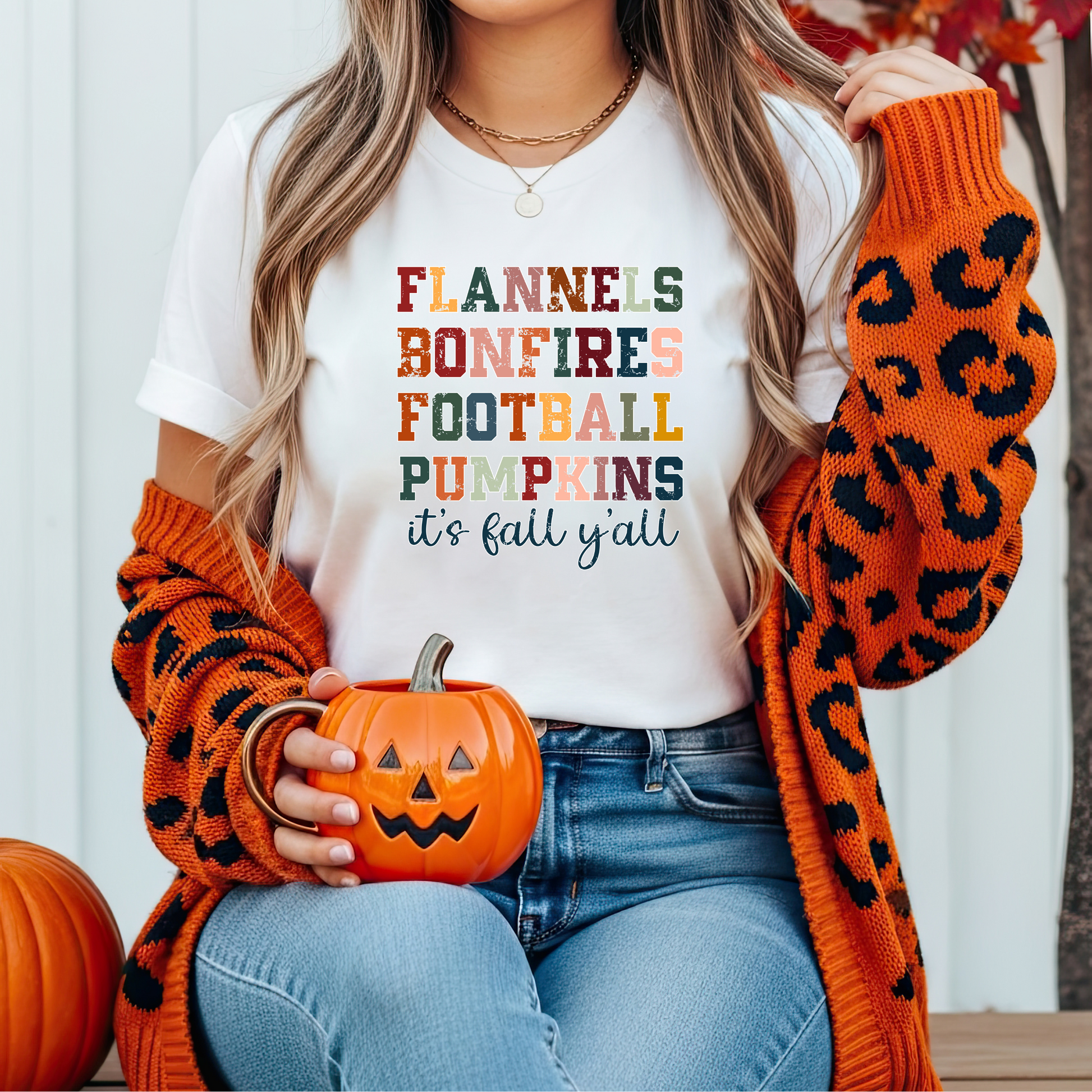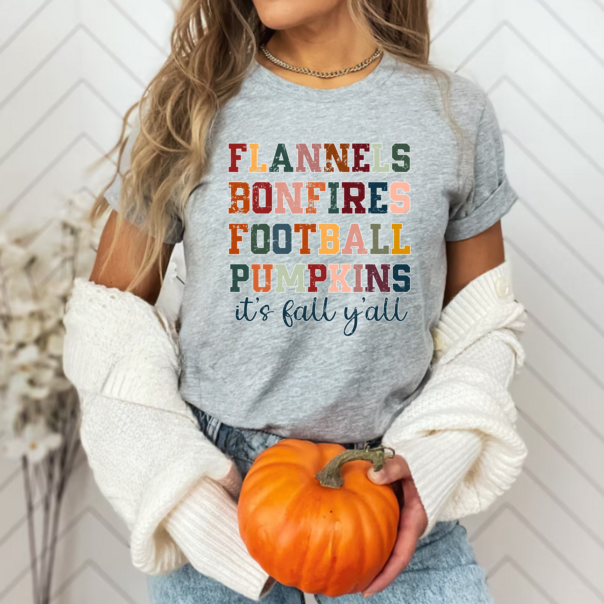 Embrace the cozy vibes of fall with this unisex T-Shirt featuring a design inspired by flannels, bonfires, and footfall pumpkins. Perfect for those who love the autumn season, this t-shirt is ideal for casual outings, pumpkin patch visits, and cozy nights by the fire. It's a must-have for anyone looking to add a touch of fall to their wardrobe.
