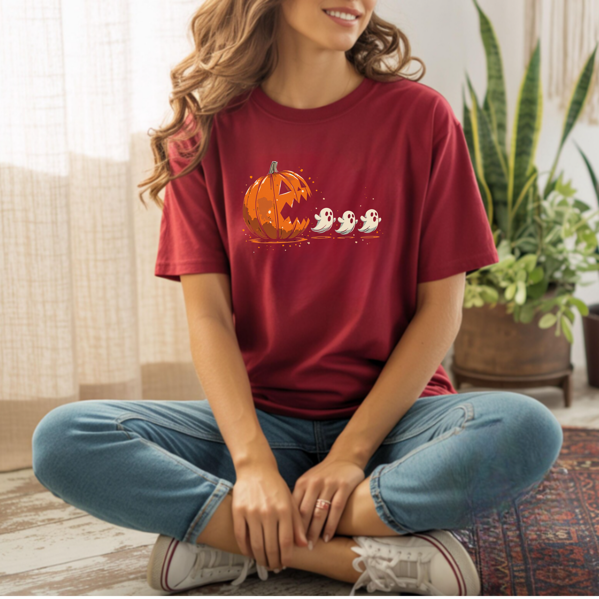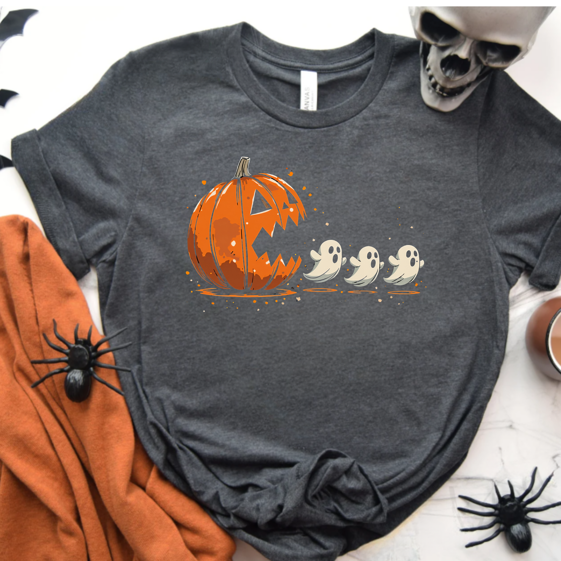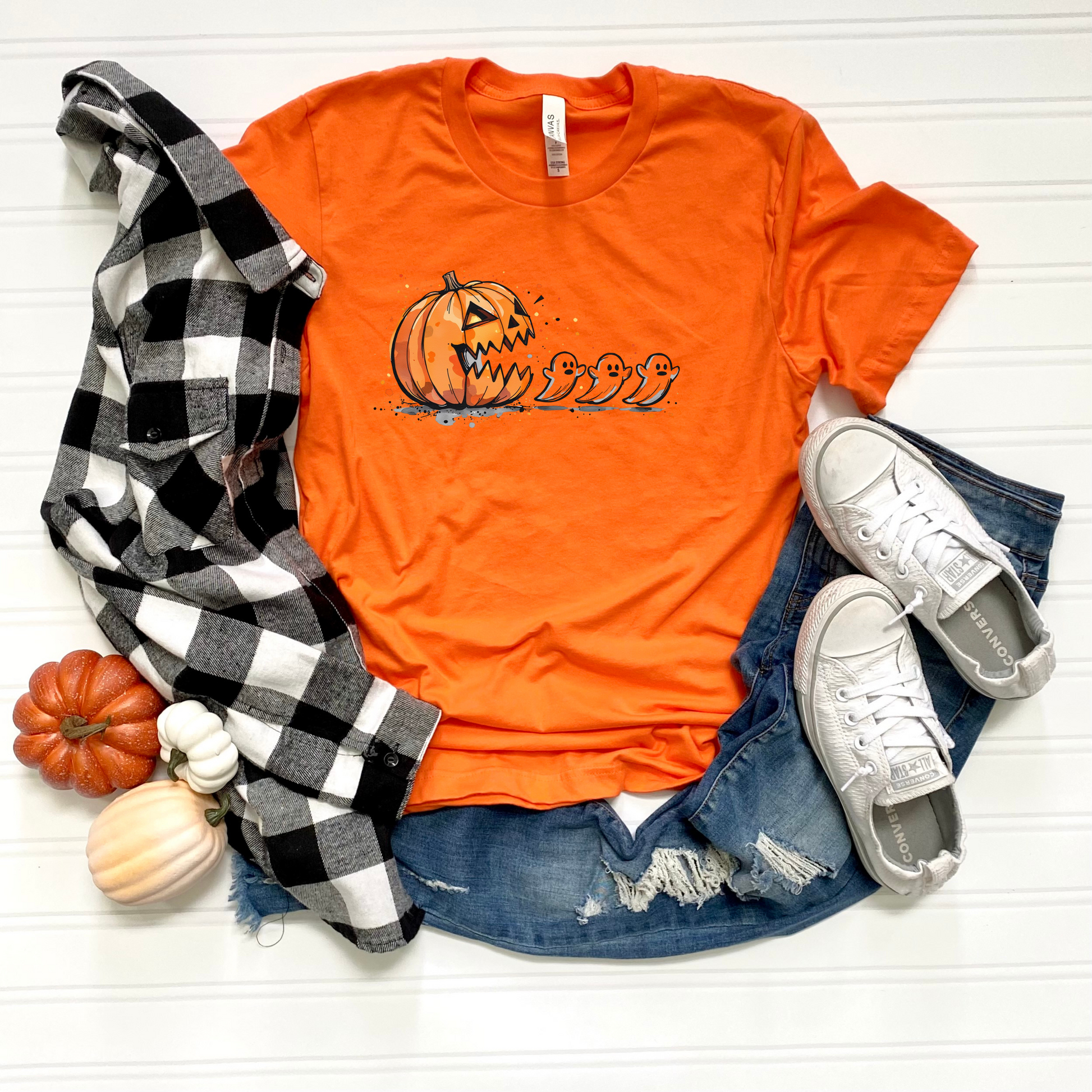 Halloween Pumpkin T-Shirt, Unisex Graphic Tee, Fall Fashion, Spooky Season Shirt, Ghost Design, Casual Wear