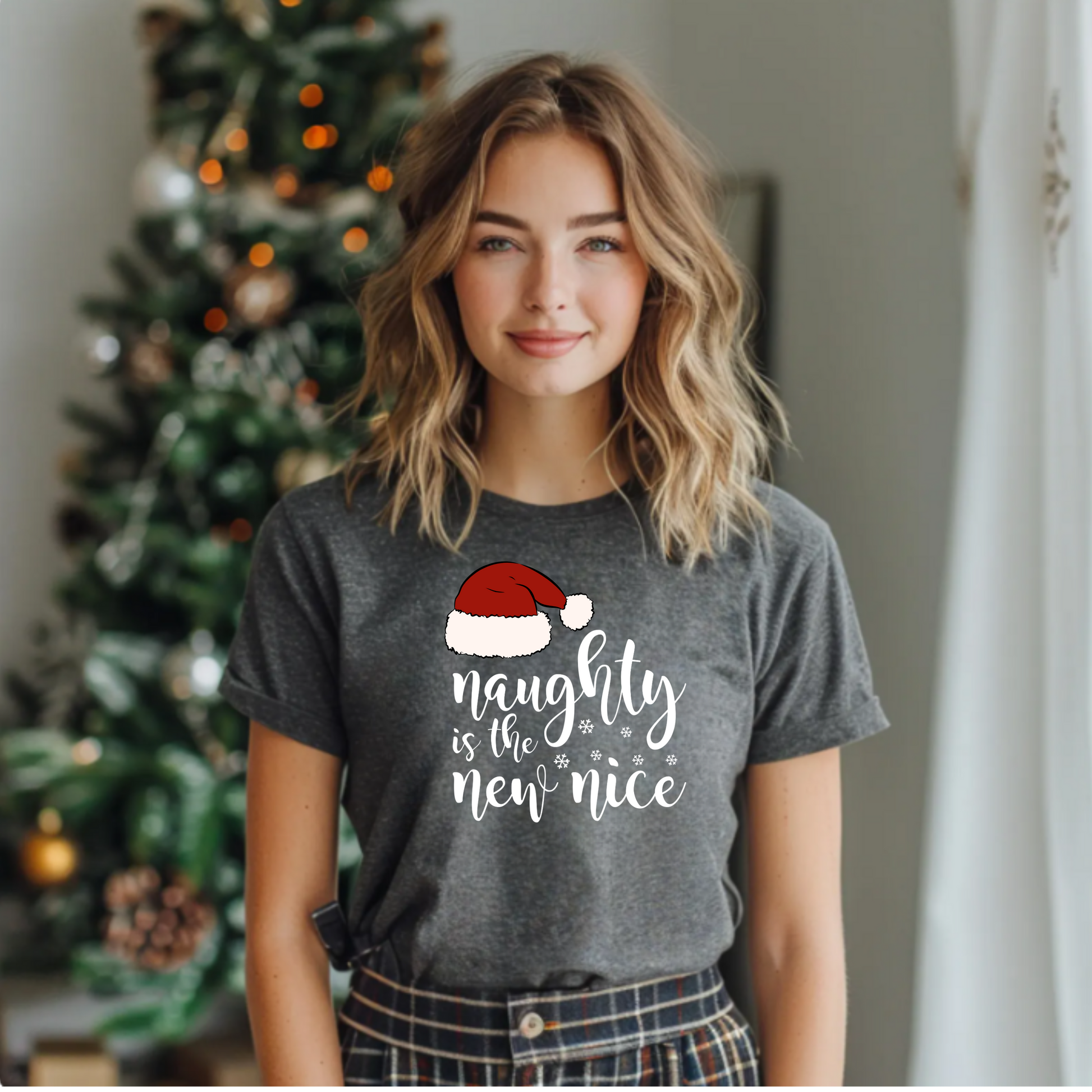 This T-Shirt with the phrase 'naughty is the new nice' exudes a playful and cheeky vibe, perfect for those who enjoy a touch of humor in their wardrobe. It can be a great gift for the holidays or a fun addition to casual everyday outfits. Target audience includes adults looking for a unique and eye-catching piece for their wardrobe.